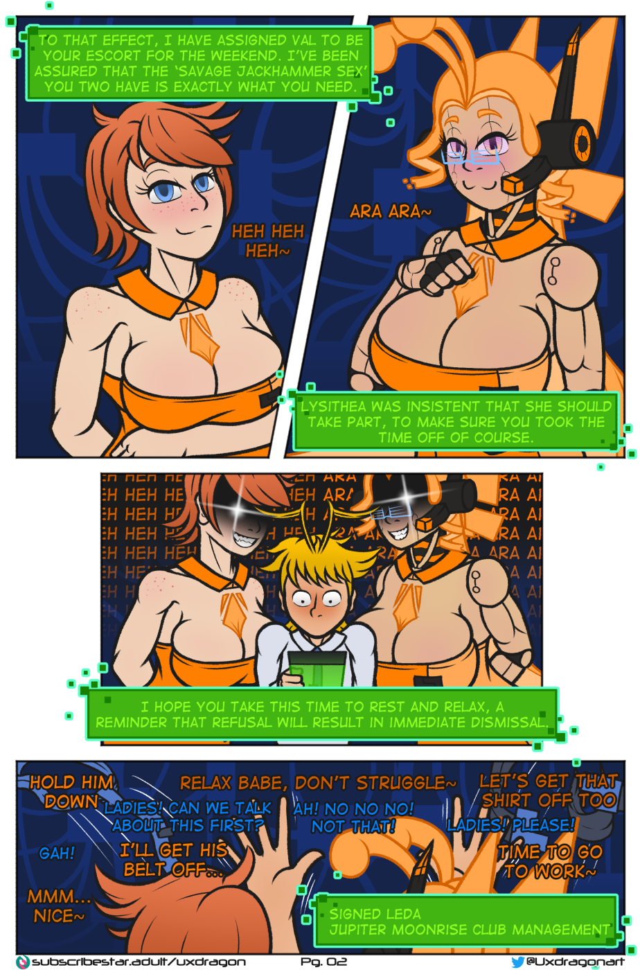 What happens when an overworked young man is forced to take time off with a slutty redhead and a horny robot?