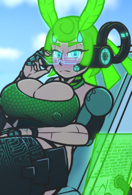 This shortstacked little ball of energy is Leda’s personal assistant and operating system for the Jupiter Network. Responsible for being Leda’s eyes and ears within the club, as well as assisting her managing the business's accounts. Curious to a fault, she sometimes finds herself abandoning her responsibility to learn more about the wider world instead.